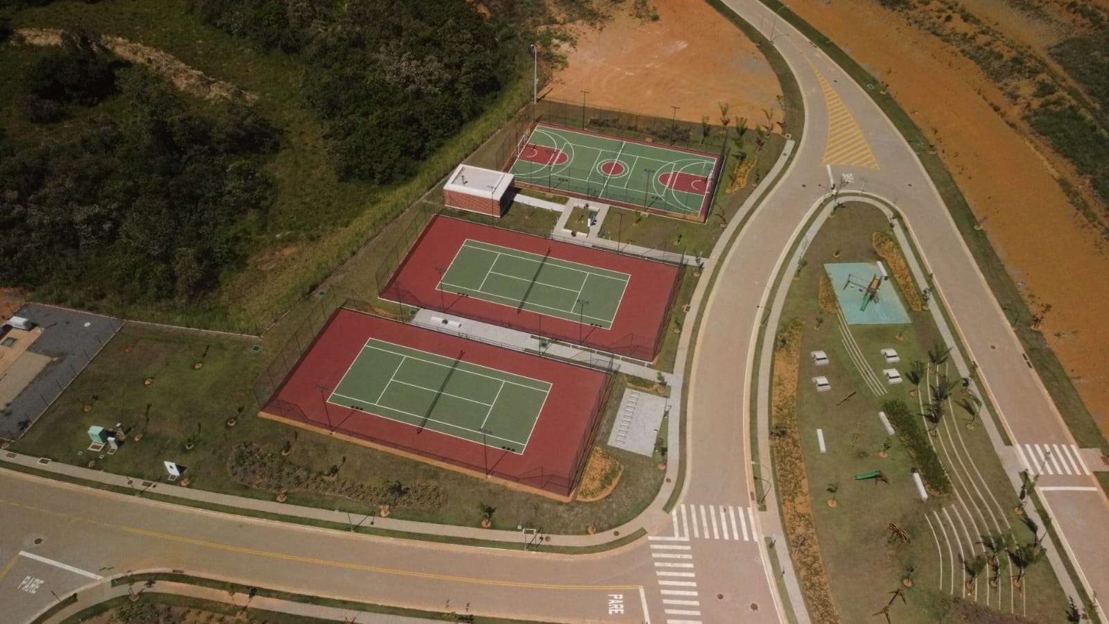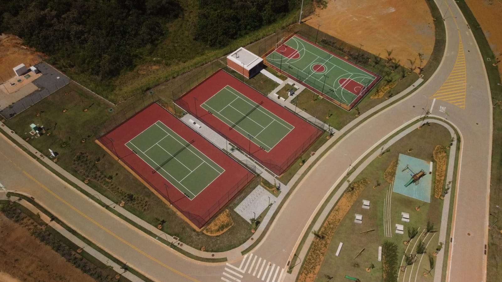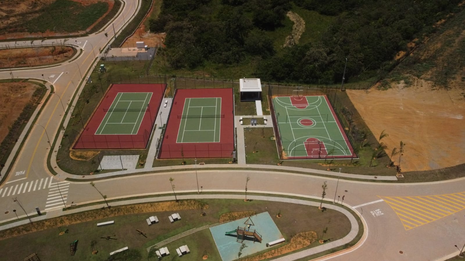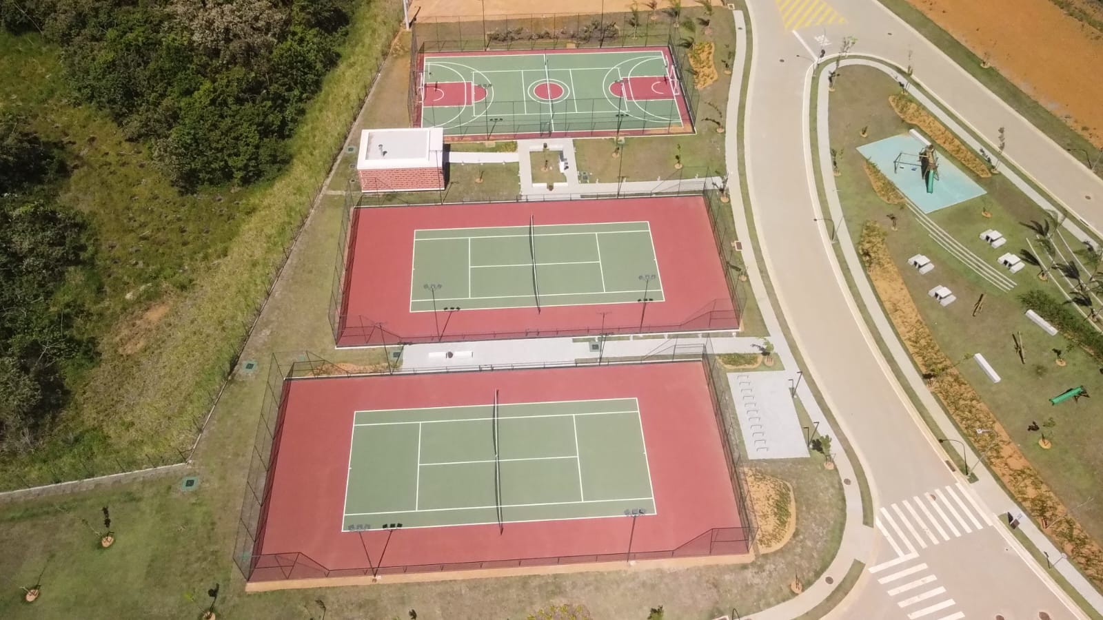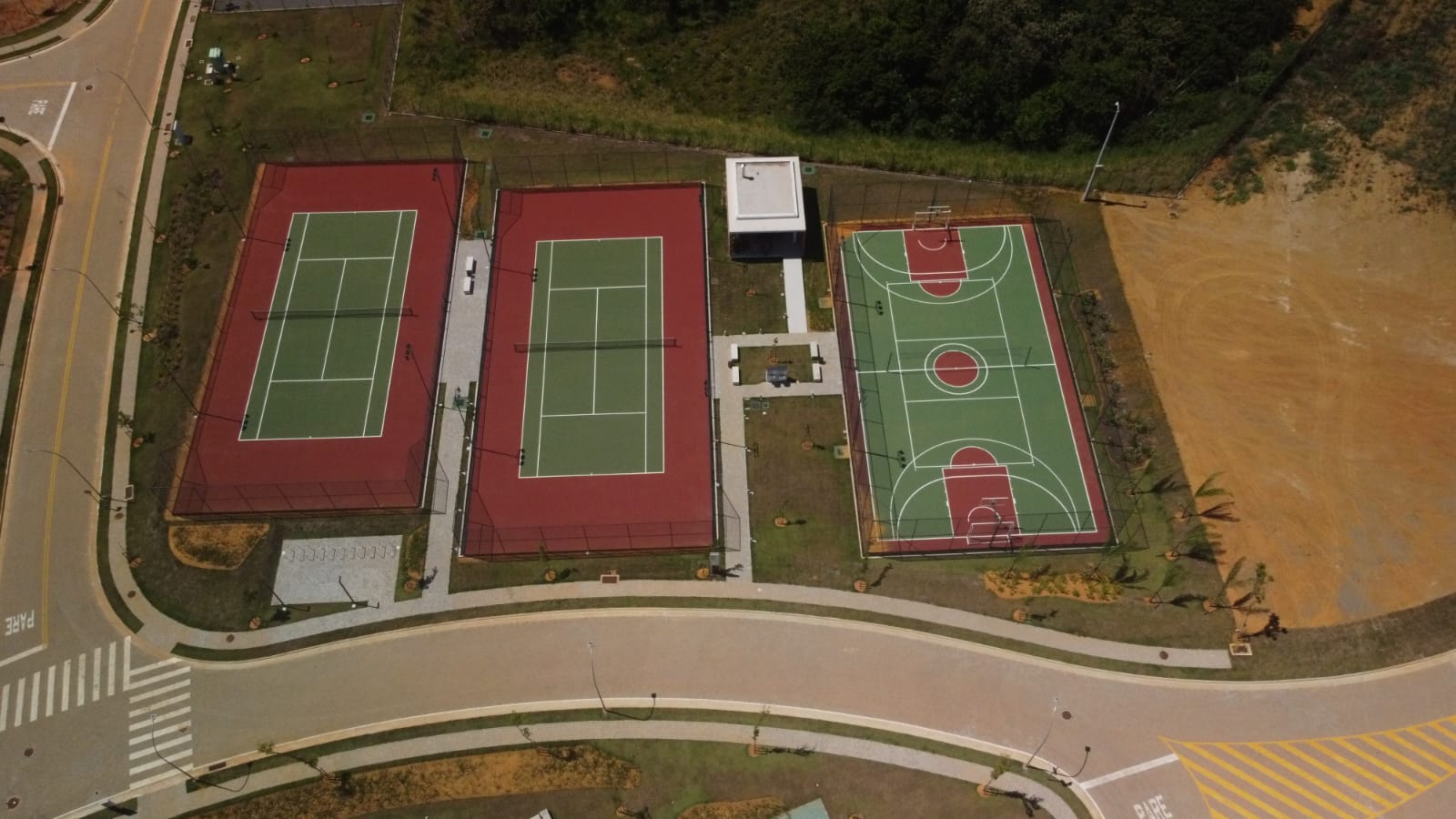 Tipo de serviço: Construção de campo de futebol com grama sintética, Quadra de tênis com piso asfaltico, Quadra de basquete com piso em concreto, 2 quadras de areia para beach tennis, futevolei e volei de praia.