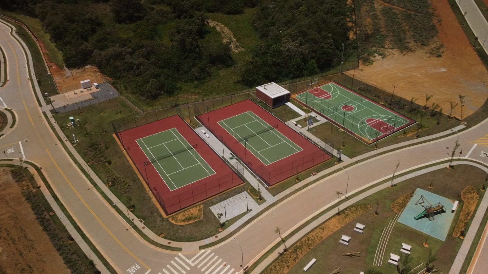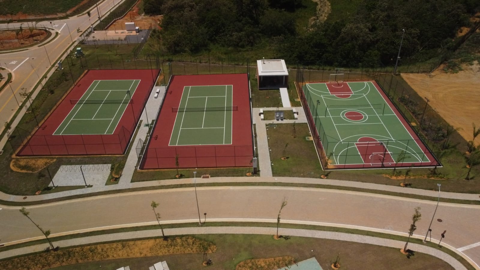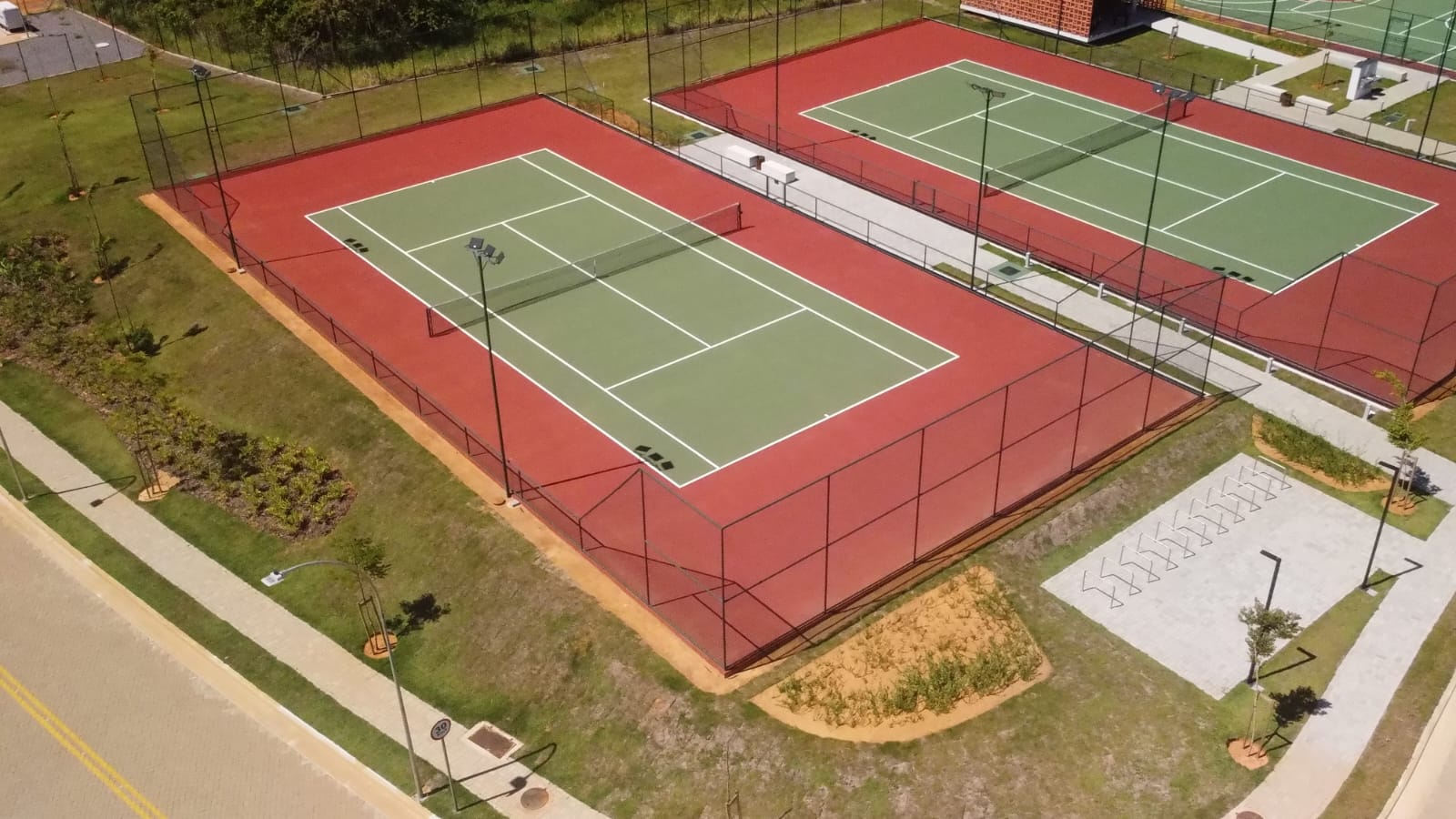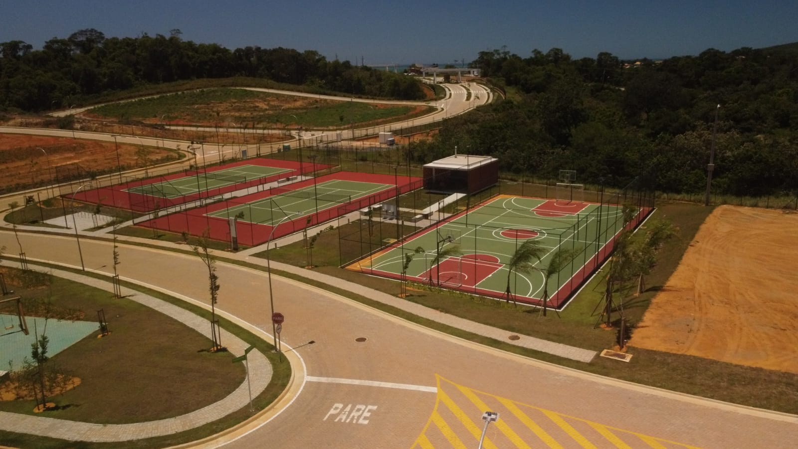Construção de seis quadras esportivas no Condomínio Alphaville Três Praias, em Guarapari (ES). Empreendimento de luxo que possui praia privativa, piscina, áreas verdes. Foram quatro quadras de tênis, uma poliesportiva e uma de beach tennis, todas de tamanho oficial.