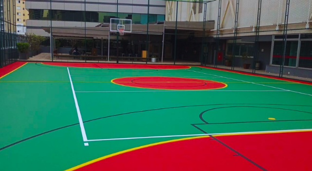 Além disso, o uso criativo de marcações (divisões geométricas e composições fora do padrão) contribui para uma experiência diferenciada. A quadra deixa de ser um “chão pintado” para se tornar um ativo visual e esportivo.